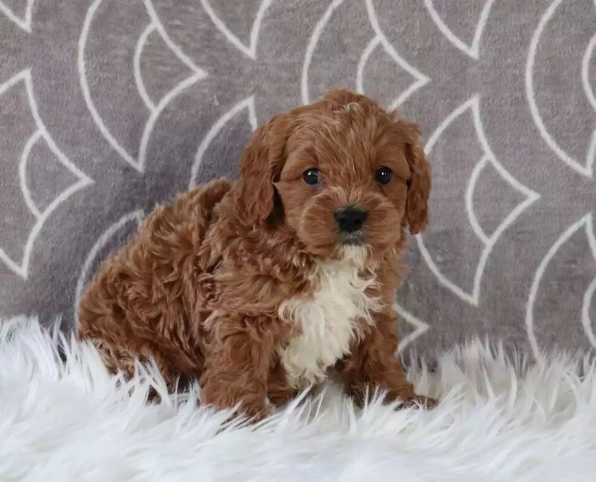 A Cavapoo is a mix between the Cavalier King Charles Spaniel and the Poodle. Because of this combination, Cavapoos inherit the gentle temperament of the Cavalier and the intelligence of the Poodle. As a cavapoo adult, the dog becomes more confident, emotionally bonded with its family, and easier to train.